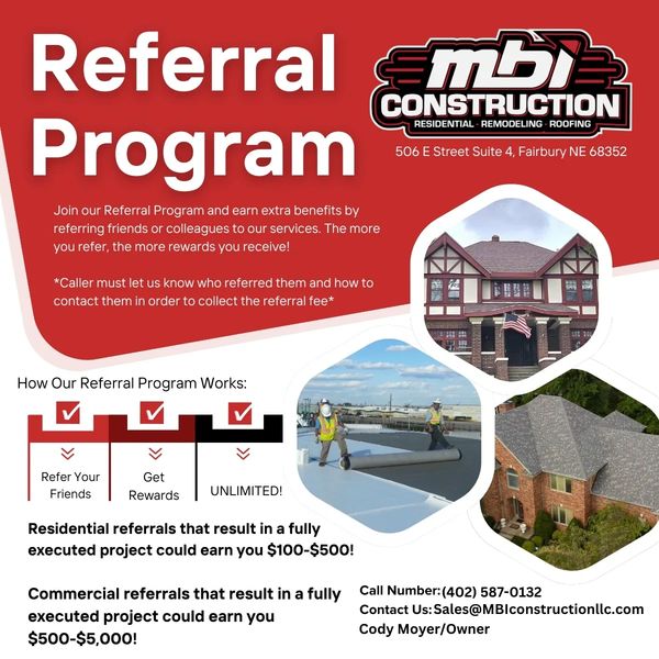 At MBI Construction, your recommendation is our greatest compliment. When you refer us, you help us continue delivering high-quality craftsmanship to the people who matter most — your friends, family, and community.